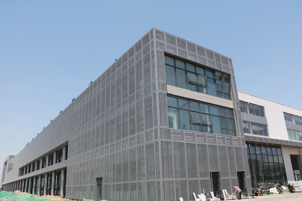 “我们施工的幕墙工程采用三玻两腔的形式,从外面就能看到时尚的孔洞设计,在材料上用的是四毫米厚的穿孔铝板,这种设计节能环保,而且兼顾了遮阳与透光性;高速磁浮实验中心幕墙由35组、98套可开启遮阳系统的铝板组成,在遇到极端天气情况下,幕墙装有的风感装置,超过六级风时,幕墙将自动关闭。”中青建安集团高速磁浮实验中心项目副经理李格林介绍说,通过整体的穿孔铝板外墙,勾勒完整的建筑体块,在强调虚实对比的同时,加强建筑的整体效果。改变传统的穿孔铝板的形制,结合遮阳设计,将穿孔铝板改造成既可平铺又可折叠建筑构件,提高建筑材料的应用性,使建筑更具有科技型及创新性。